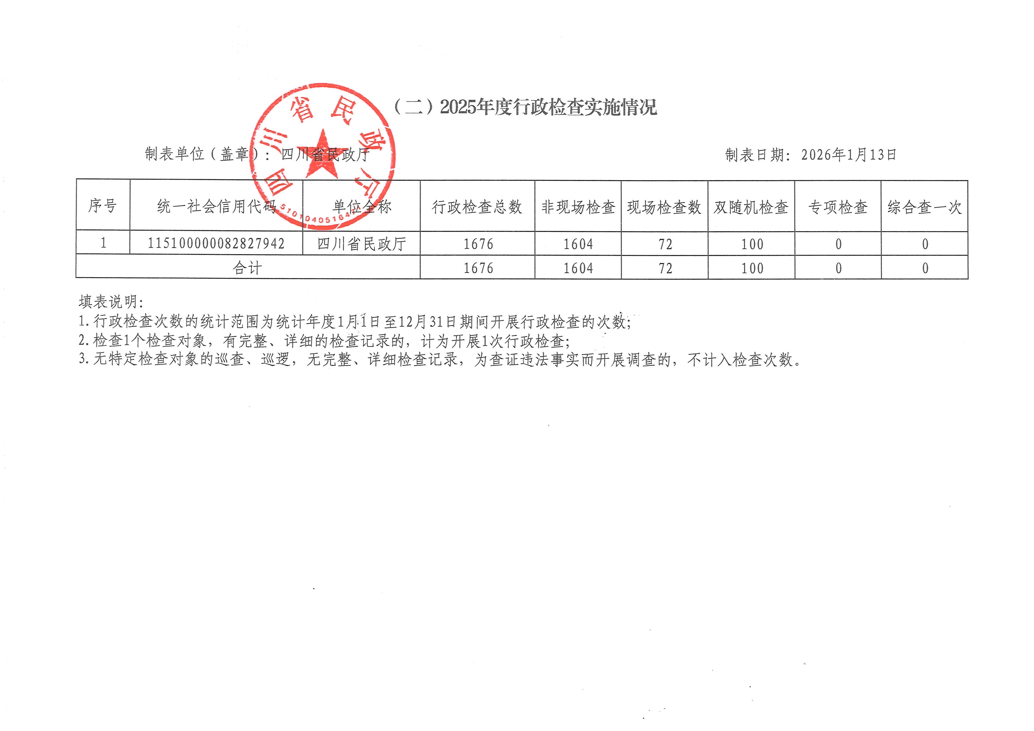 四川省民政厅2025年度行政许可、行政处罚、行政检查实施情况公示