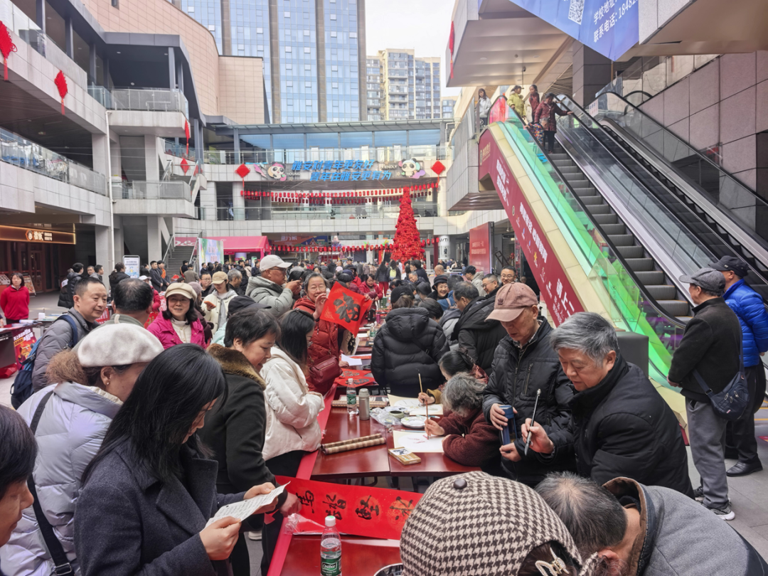 临时党支部联动市第四人民医院现场义诊,邀请市老年大学开展招生咨询,并组织市老年书画研究会志愿者及市老年大学师生现场书写春联、绘制年画,营造了浓厚的节日氛围与服务温度。