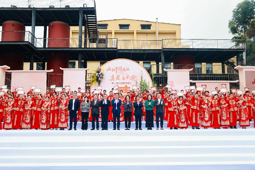 10月28日,由四川省民政厅、重庆市民政局联合主办,成都市民政局、成华区人民政府承办的第二届川渝集体婚礼在成都东郊记忆圆满举行,60对川渝新人身着传统婚服,在全场嘉宾和亲友的见证下共结连理。四川省民政厅党组成员、副厅长李练出席并为川渝新人证婚,重庆市民政局党组成员、副局长胡立出席并主婚。