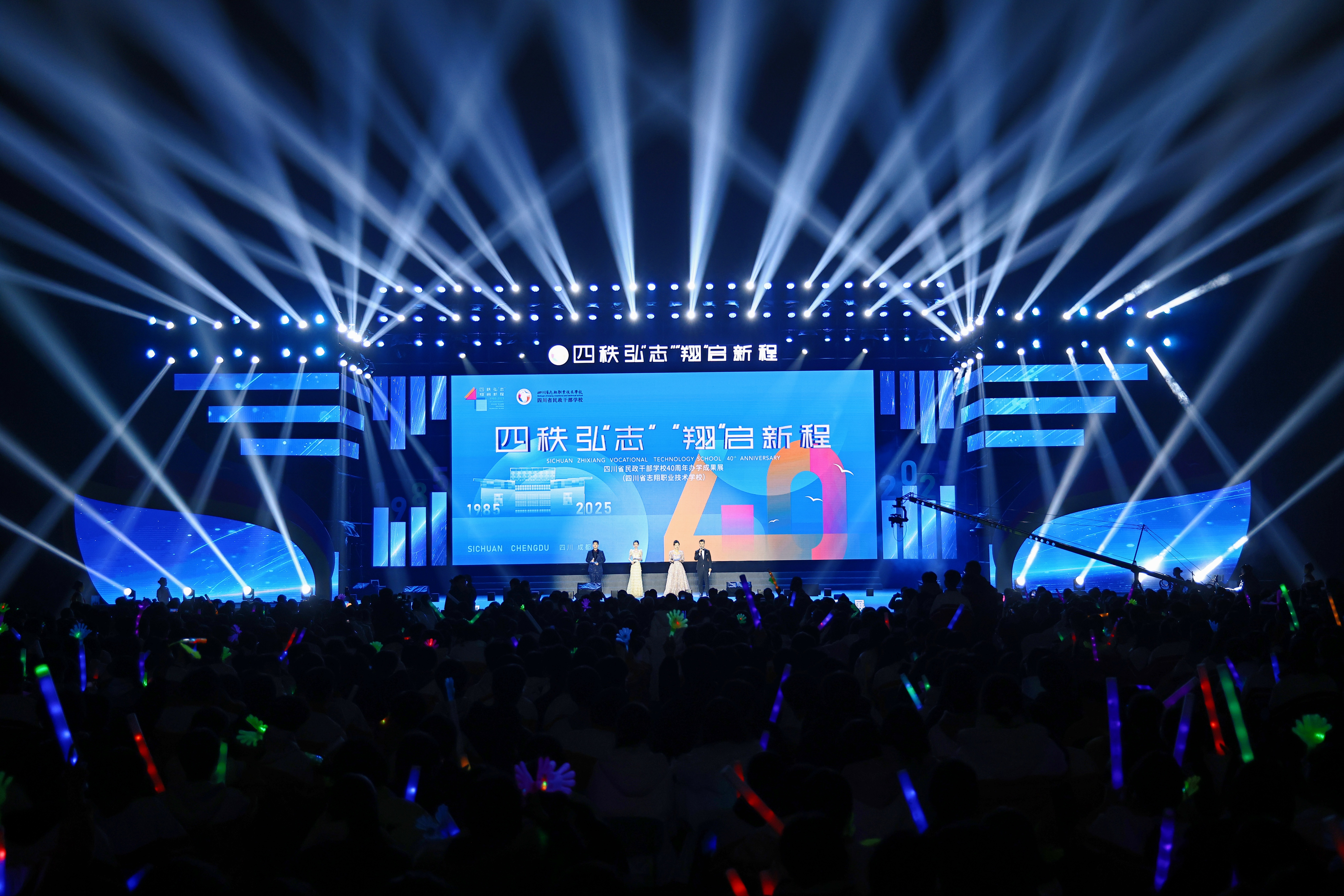 成果汇报:光影流金,真情演绎。晚会分为《溯・初心如炬》《承・匠心如磐》《绽・星光如海》《启・星河灿烂》四大篇章,通过多种艺术形式,生动再现了学校四十年发展的壮阔画卷。从再现建校初心的《根脉》,到展现技能育人温度的《手有精技,心有大爱》;从传递感恩反哺深情的《受助思源,反哺成光》,到展望职教未来的《聚智同行,向光而生》……一个个节目情感真挚、创意纷呈,既体现了学校深厚的民政文化底蕴,也展现了师生昂扬向上的精神风貌和精湛的专业技能。晚会在全场大合唱《立志成才,展翅飞翔》的激昂旋律中落下帷幕。歌声嘹亮,誓言铿锵!